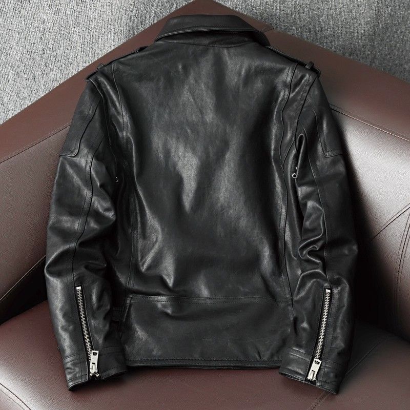 ♥h メンズ 本革 レザージャケット 羊革 オイルワックス 植鞣加工 バイカー ジャケット 春秋用 ブラック S-4 XL