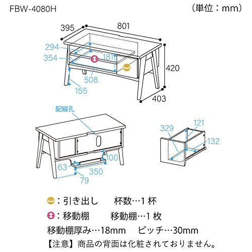 IV FBW-4080 H センチ 高さ42 奥行40.3 幅80.1 アイボリーの木目調 フェルボワ AV機器 ゲーム機 DVDなどをたっぷり収納できる 配線をすっきりまとめるコード収納スペース 一人暮らし コンパクト テレビボード ローボー
