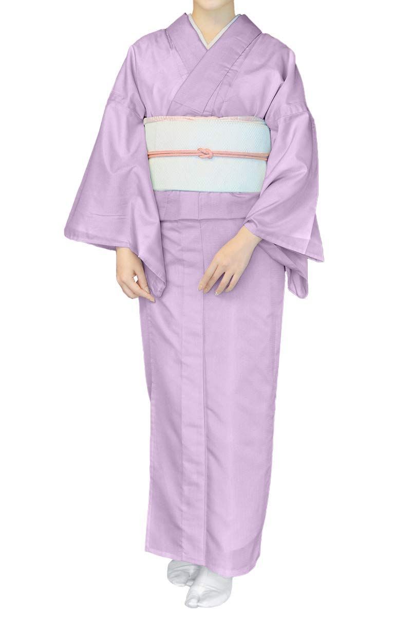 M_1.浅紫 KYOETSU キョウエツ 着物 洗える 単衣 無地 駒絽生地 レディース M 1.浅紫