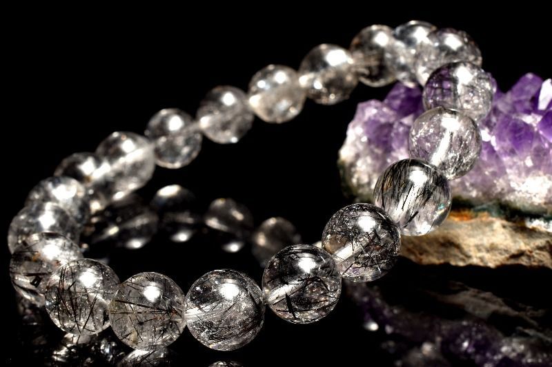 【材質】ブラックトルマリンインクォーツ 9.5mm 産地:ブラジル