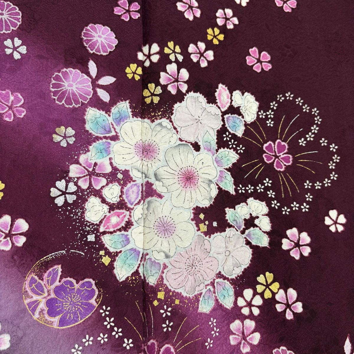 訪問着 身丈173.5 cm 裄丈71.5 L 袷 翠山工房 落款 丸紋 辻が花 金銀彩 ぼかし 赤紫 正絹