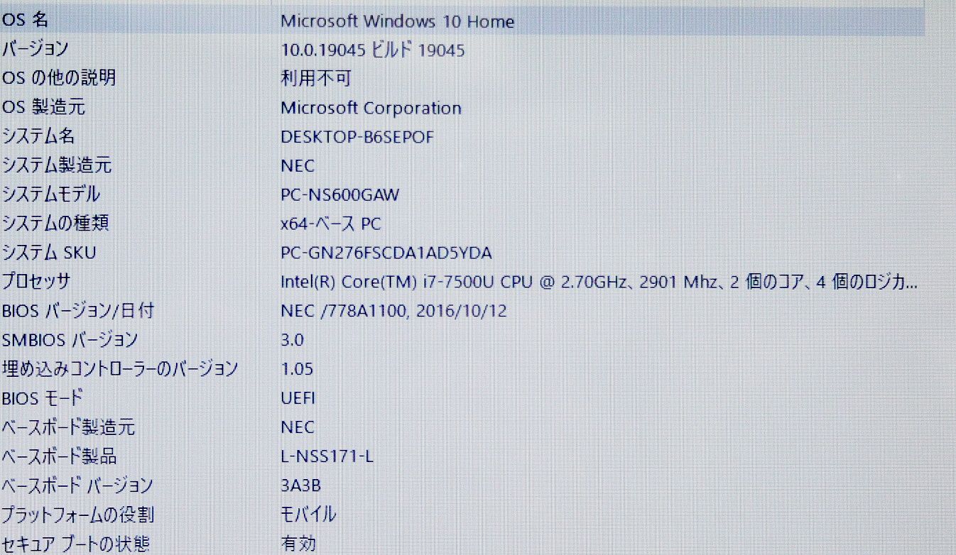 NEC NS 600 GAW PC- Windows 10 メモリ16 GB corei 7 HDD 1 TB 15.6型 クリスタルホワイト LAVIE Note Standard ノートPC パソコン