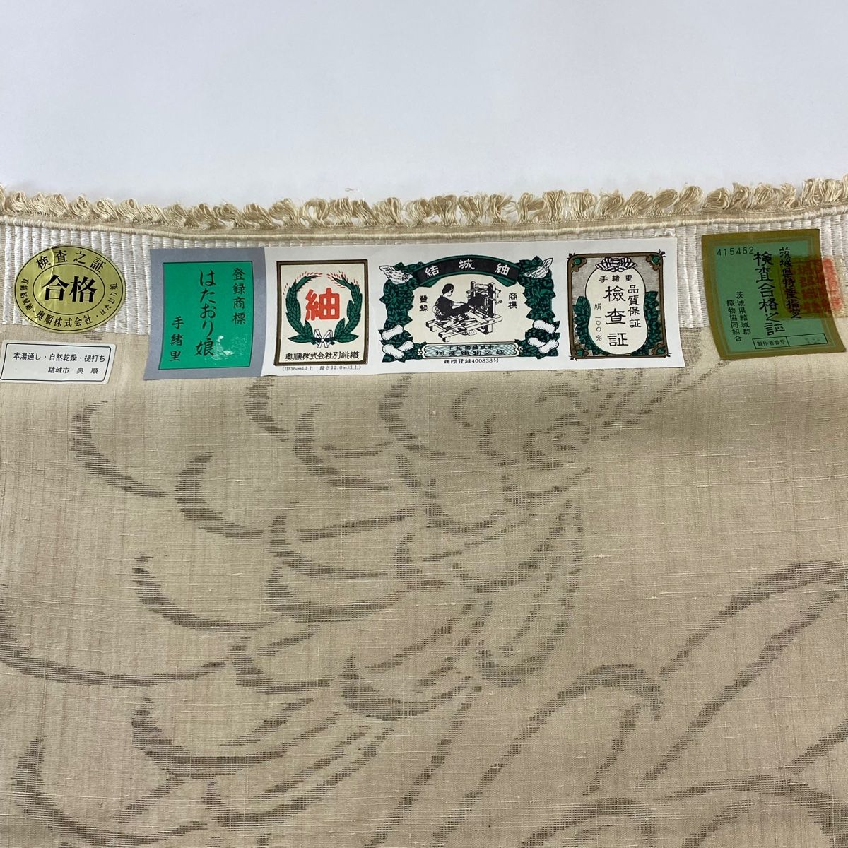 反物 結城紬 証紙 奥順 はたおり娘 菊 ベージュ 正絹
