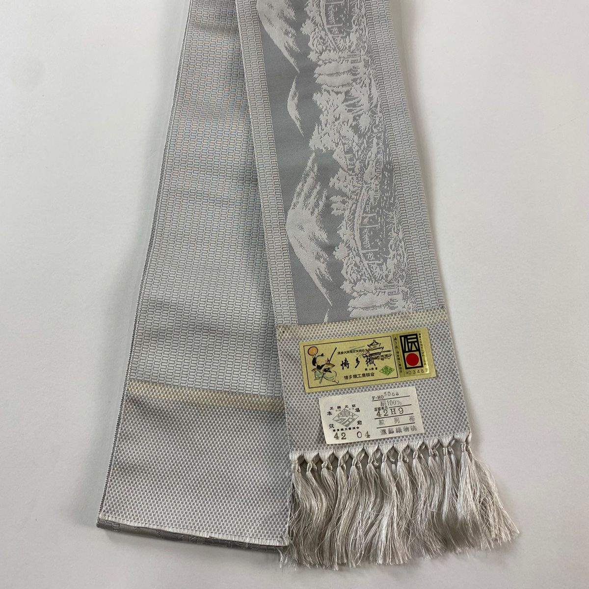 角帯 秀品 博多織 証紙 風景 橋 灰色 正絹