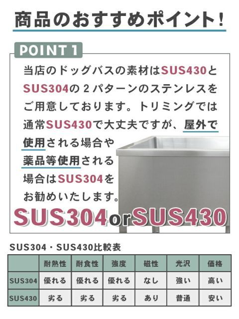 ドッグバス(扉無し)ステンレス素材:SUS430
