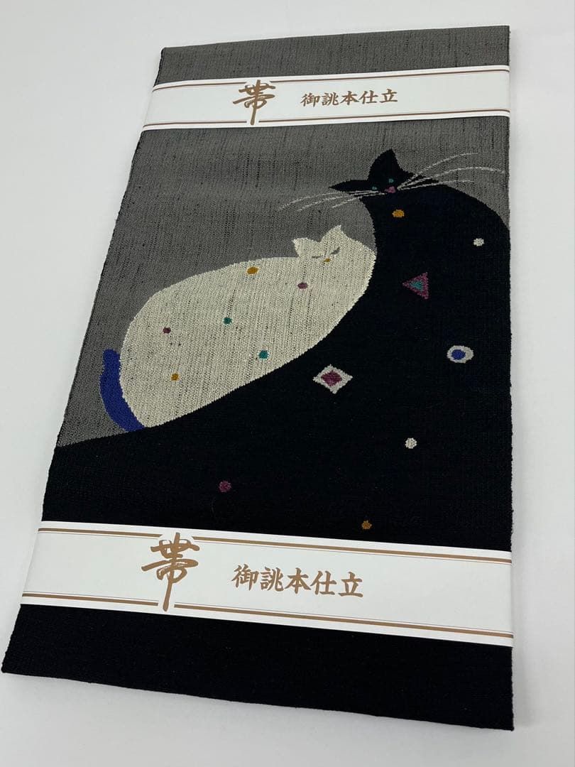 すくい織 ネコ 八寸名古屋帯 松葉仕立て 銀糸 正絹