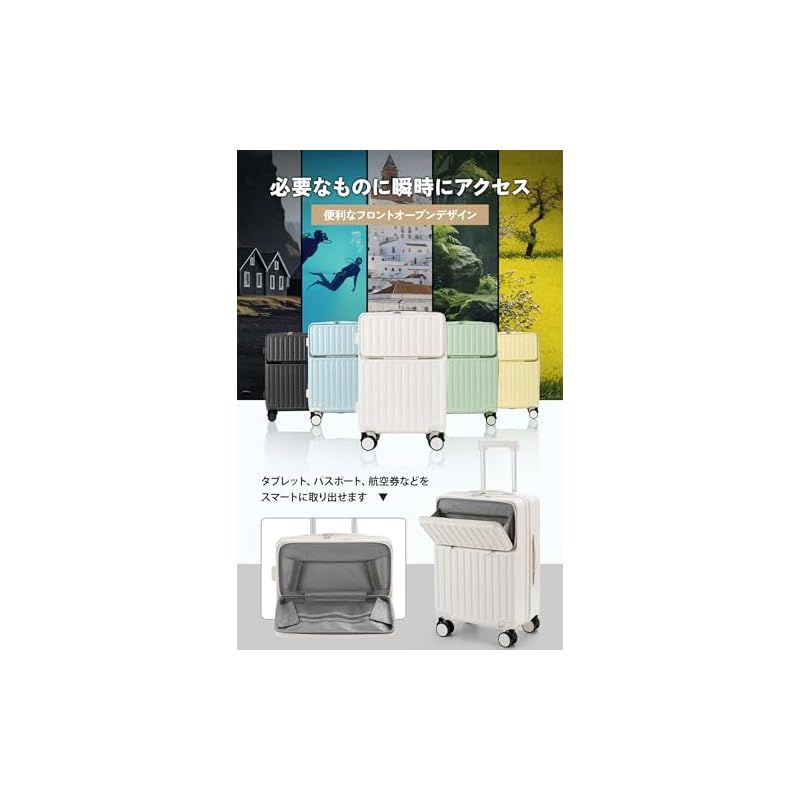 スーツケース 機内持ち込み・多段調節キャリバー・柔軟ハンドル】フロントオープン スーツケースはABS樹脂とPC混合素材を採用されており、軽量で耐圧性、耐久性に優れ、大切なお荷物をしっかりと守ってくれます。三段階調節なスムーズに伸縮でき、さまざまな体格の方に合わせて調整可能です。長旅や出張にも最適です。