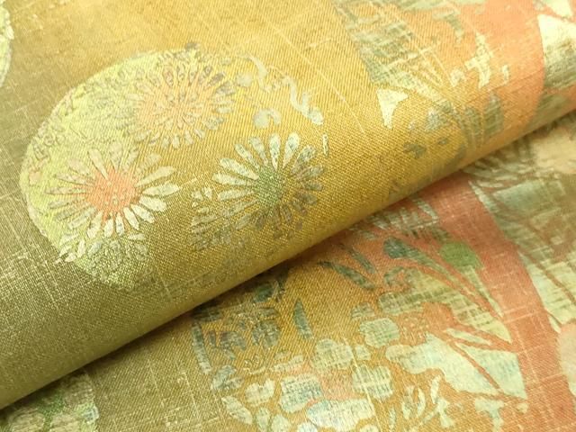 平和屋着物 上 石川県指定無形文化財 牛首紬 白山工房 手織り 全通柄袋帯 花丸文 金彩 kh 5