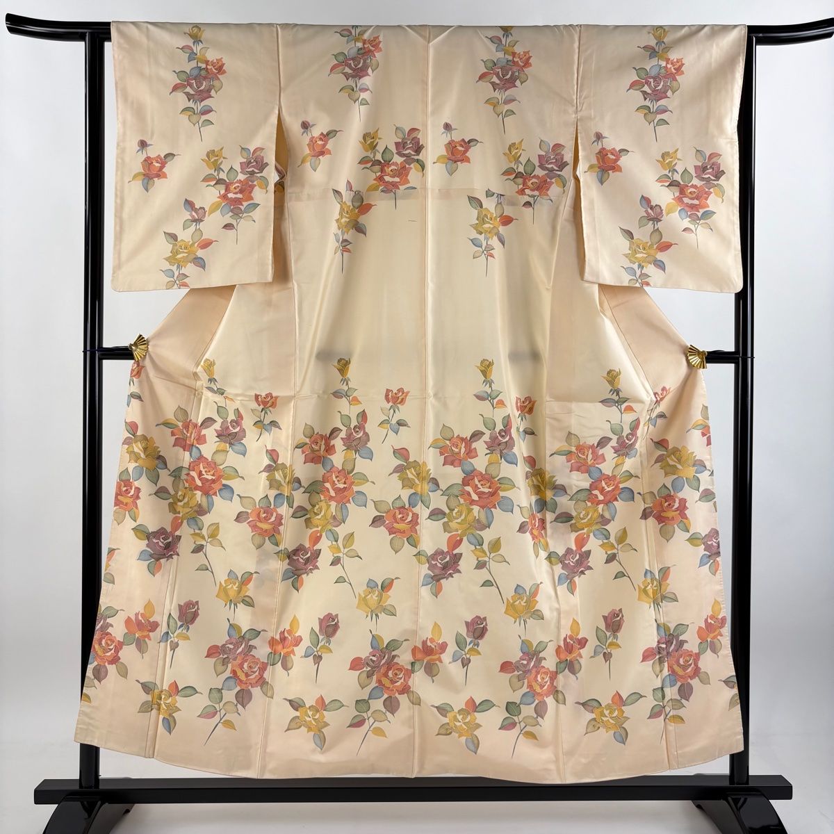 訪問着 身丈155 cm 裄丈63 S 袷 紬地 薔薇 ベージュ 正絹 秀品