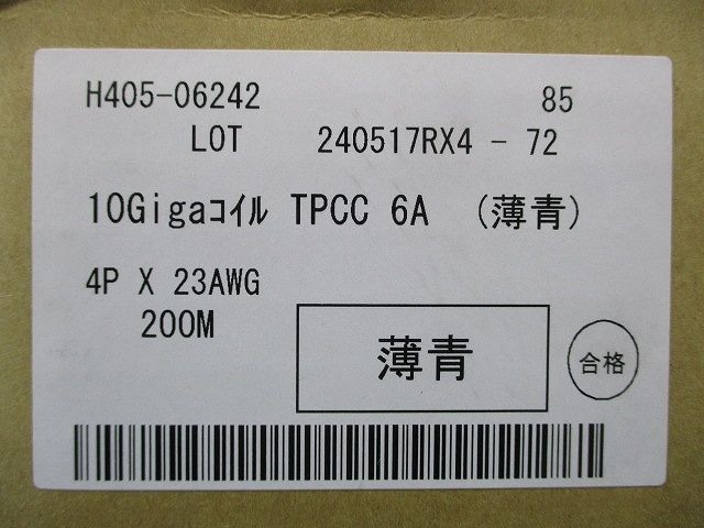 商品名 :Cat6A 単線 <10G-T>LAN(UTP)ケーブル 200m巻 23AWGX4P ライトブルー