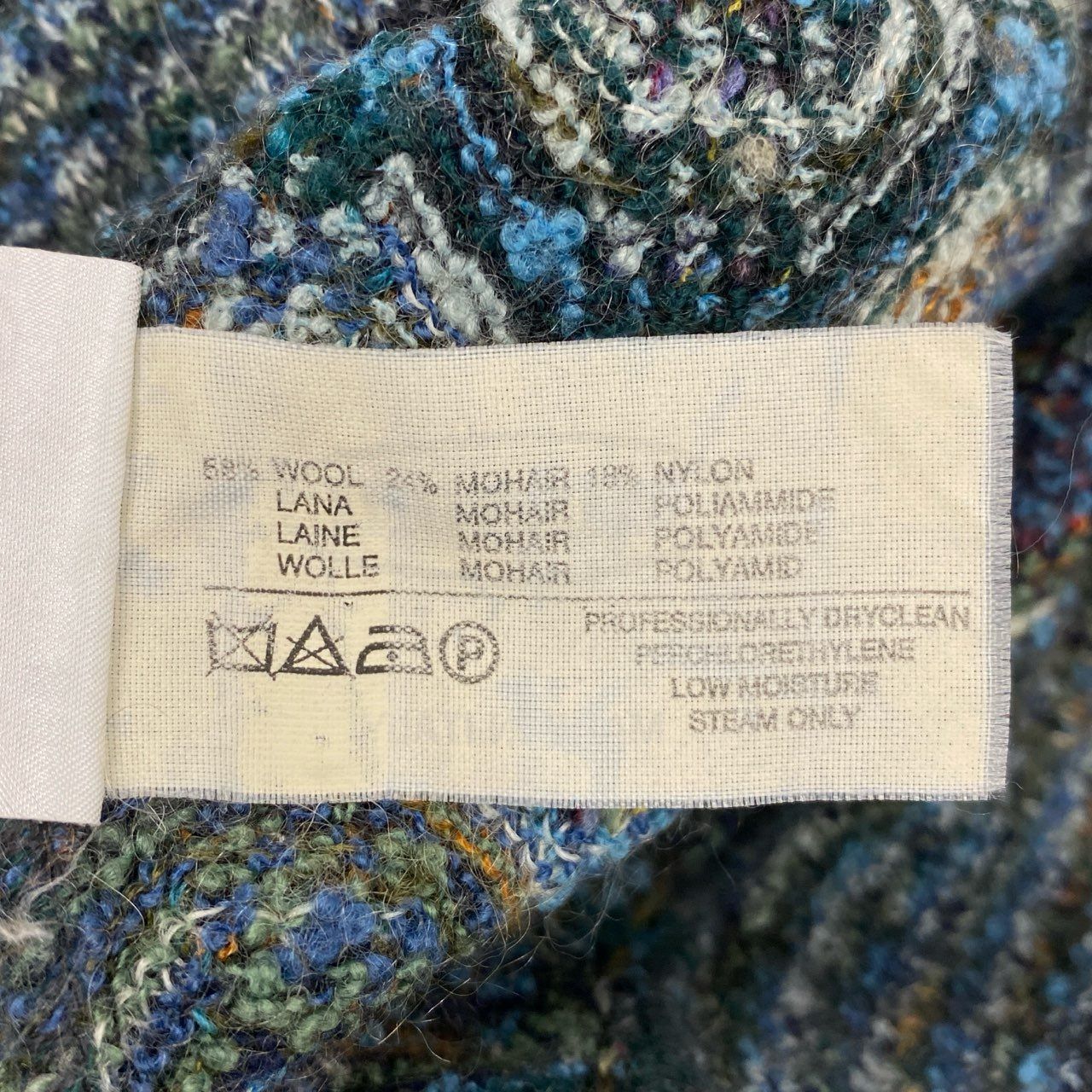 MISSONI(ミッソーニ)のニットセーター。ブルー・グリーン・ブラウンを基調としたミックスカラーに、ブランドを象徴するジグザグパターンが美しく映える一枚です。毛足のあるウール混素材が生む柔らかな表情と、独特の立体感ある編み柄が高級感を演出。シンプルなボトムスに合わせるだけでコーディネートが完成し、秋冬の主役ニットとして存在感を放ちます。