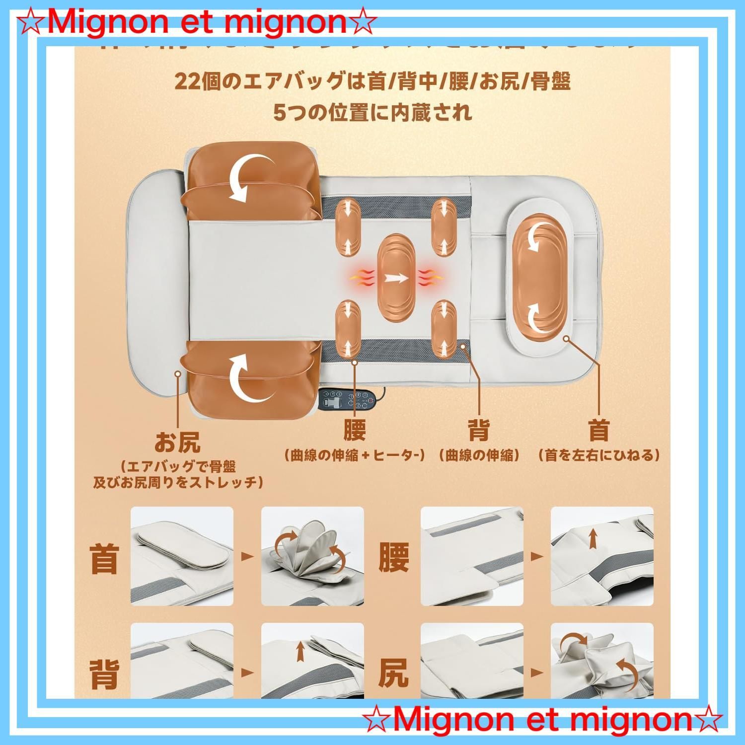 立体エアーマット エアーストレッチマット 首/背中/腰/お尻用 22エアーバッグ搭載 ヒーター付き リラクゼーションシート 全身エステ 折り畳み式 伸ばし 寝たまま 自動/手動モード 3段階強度調整 3段階タイマー リラックス 柔軟 ストレッチ器具 ギフト