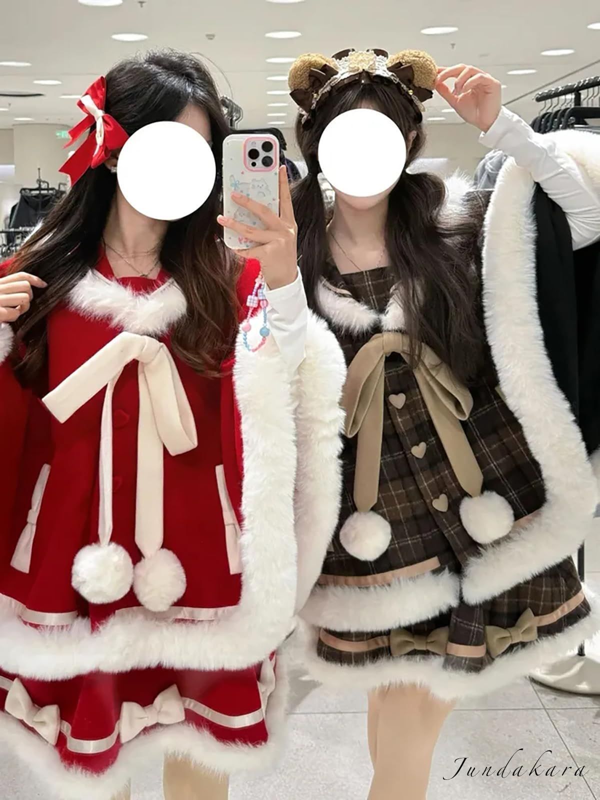 2点セット:「ケープ」+「スカート」の2点セットです。ケープはセーラー襟のデザインです。スカートはウエストゴム付きです。 サイズ:「S」ケープ丈66、スカート丈40、ウエスト62。「M」ケープ丈67、スカート丈41、ウエスト64。「L」ケープ丈68、スカート丈42、ウエスト66。「XL」ケープ丈70、スカート丈43、ウエスト68。実際に測ったサイズは商品によって1?3cm程度の誤差が出る場合がございますので、予めご了承ください。 デザイン:リボンをたっぷりと施した素敵なデザインで、可愛すぎてコーディネートの主役に。ケープフロントのポンポン付きリボンが取り外し可能です。ボリューム感のあるスカートで、ふわふわでかわいい雰囲気が溢れます。 厚手:ふわふわ&もこもことした厚手の生地を使用しており、手触りが良く、防寒効果も抜群。 大活躍:量産型、地雷系、ロリータ系、フレンチガーリー系など色々なコーデに活躍できるアイテムなのでオススメです。クリスマス、コスプレ、学園祭、文化祭、コスチューム、アイドル、イベント服にもオススメのアイテムです。 続きを見る この商品について