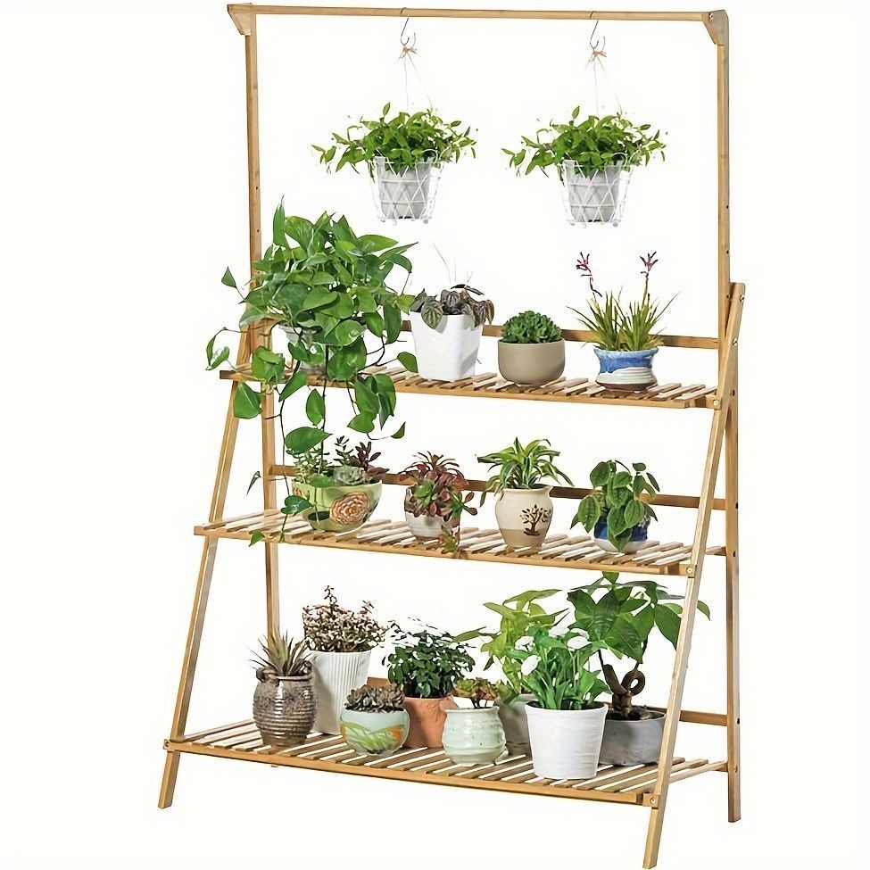 ガーデン ガーデンラック 3段 フラワースタンド 天然竹製 フラワーラック 幅100 cm ハンギング 吊り下げ 花台 植物棚 多肉植物 棚 ベランダ バルコニー 園芸ラック 鉢 プランター 植木鉢スタンド おしゃれ 庭いじり ガーデニング 木の色