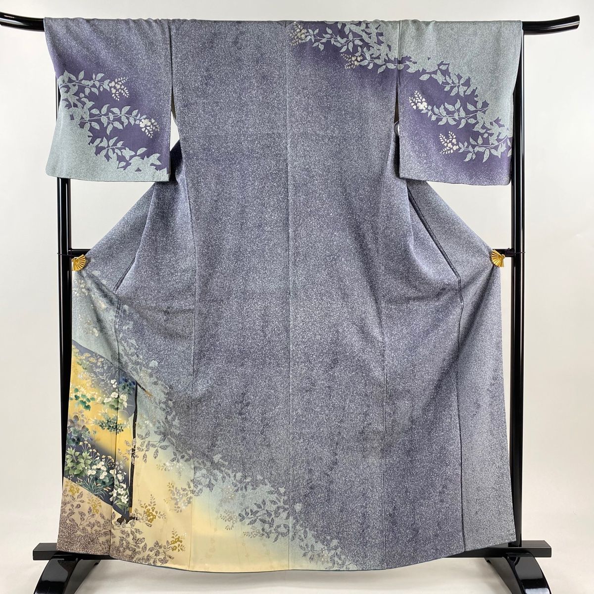 訪問着 身丈163.5 cm 裄丈68 L 袷 秋草 几帳 金銀彩 ぼかし 青灰色 正絹