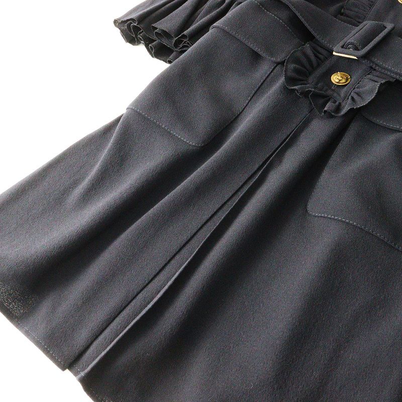 グッチ GUCCI シルク混ジョーゼット ベルト付き フリル袖 バイ ワンピース 38 ネイビー フォーマルドレス