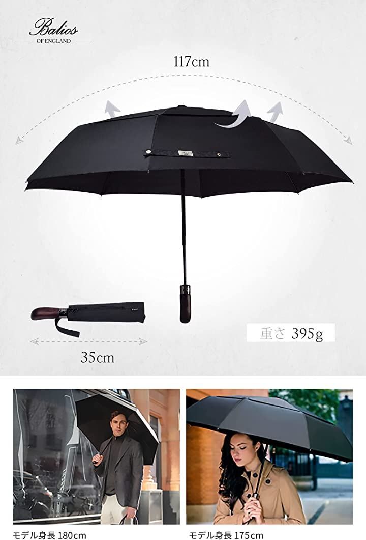 Balios 英国 バリオス 折りたたみ傘 メンズ 耐風 65 cm 8本骨 395 g 自動開閉 晴雨兼用 ジャンプ傘 ワンタッチ 大きい メタルグレー centimeters