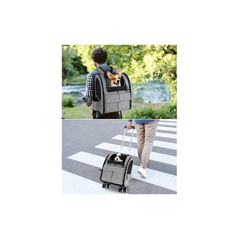??【複数のポケット】:側面と前面、背面にも複数のコンパートメントがあり、ペットフード、水筒、おもちゃ、アクセサリーをたくさん収納できます。 バックパックとして使用するときに汚れから保護するために、車輪用の折りたたみ式カバーを特別に設計します。