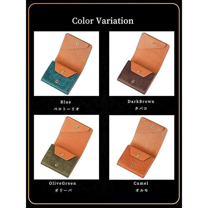 ?【 タイプ 】ミニ財布 【 素材 】タンニンなめし 本革 【 サイズ 】横幅9cm×縦幅8cm×厚み1.5cm 重さ45g 【 仕様 】札入れ x1 カード入れ x1 小銭入れ x1