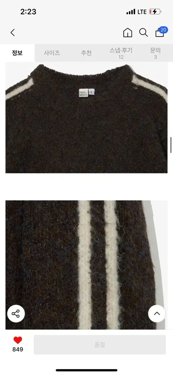 パルティメントブラウンのストライプウールニット。大きめで、両腕に白いストライプがアクセントになっています。
