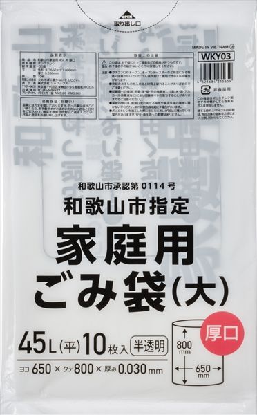 50点セット WKY03和歌山市指定家庭用大厚口45L ジャパックス ゴミ袋 ポリ袋