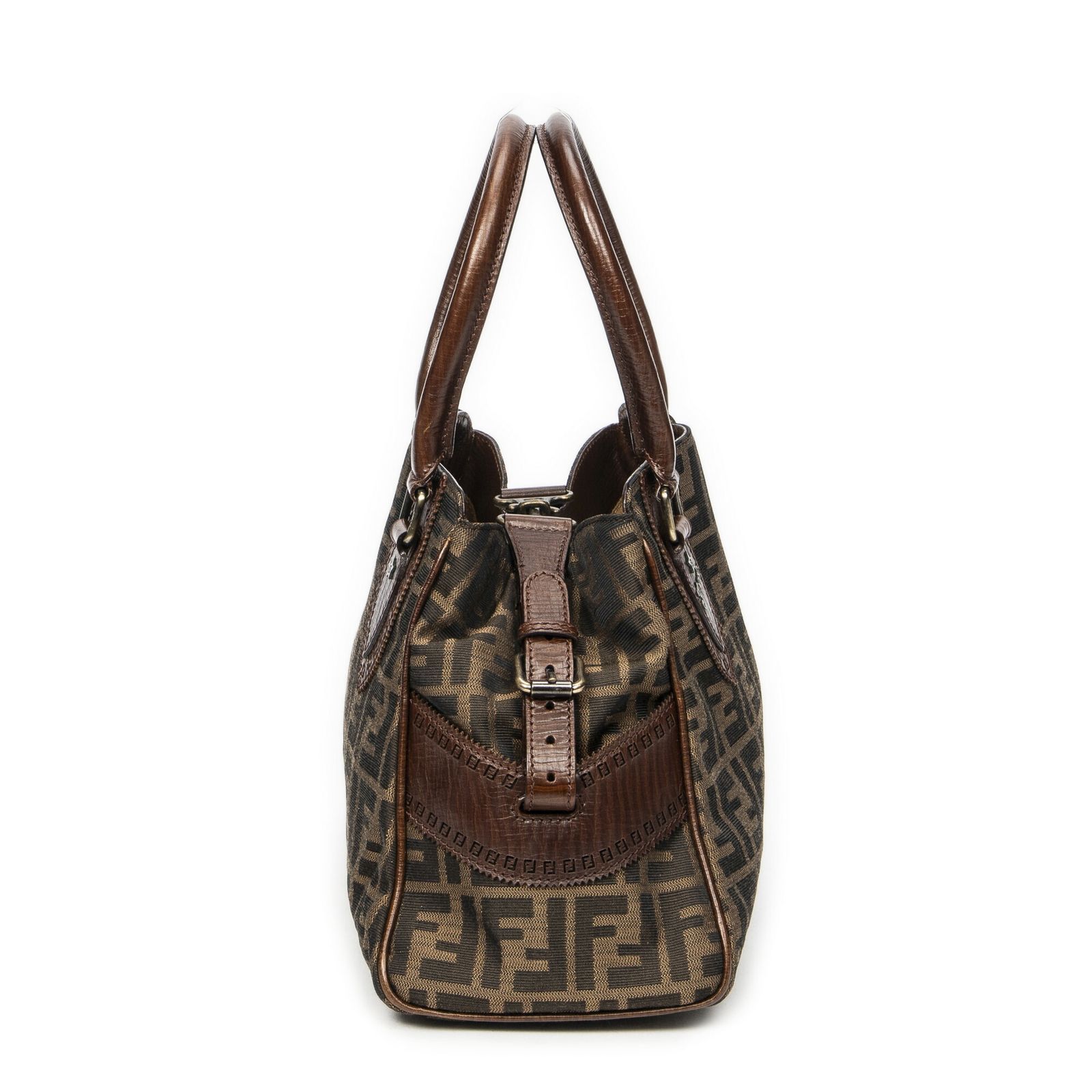 FENDI フェンディ小デュジュールトート茶色ズッカキャンバスA