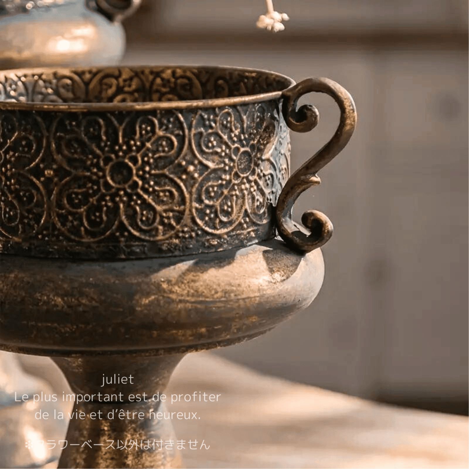 アンティーク調 フラワーベース 鉢 花柄 ヴィンテージ クラッシック シャビー エレガント スタンド 錆び加工 ラスティック仕上げ 金属 アイアン アンバー アレンジメント インテリア ガーデニング ホームデコレーション 広口 オシャレ 大きめ 小さめ 円柱