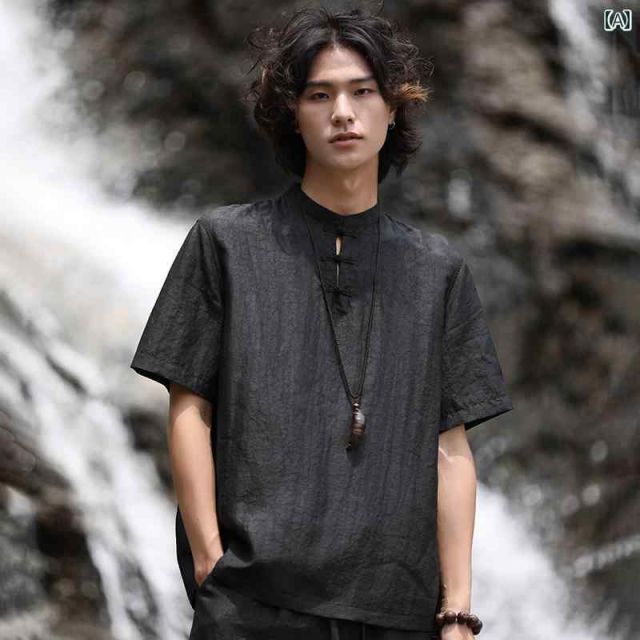 商品名:メンズ ファッション 服 男性用 オシャレ シンプル 大人 かっこいい 大きいサイズ ストリート 紳士服 唐服 ハイエンド 夏 トップス 半袖 シャツ レトロ