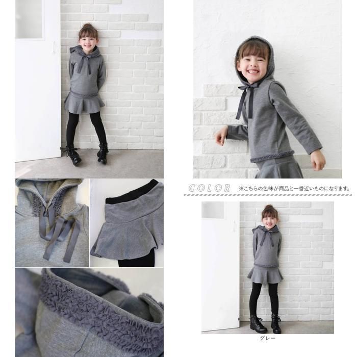 グレー 140 cm マールベビーフリルスカッツ&パーカーセットアップ キッズ 女の子 おしゃれ 服 セットアップ 上下セット 秋冬 長袖 パーカー スカッツ スカートパンツ フーディー フリル 綿 コットン かわいい