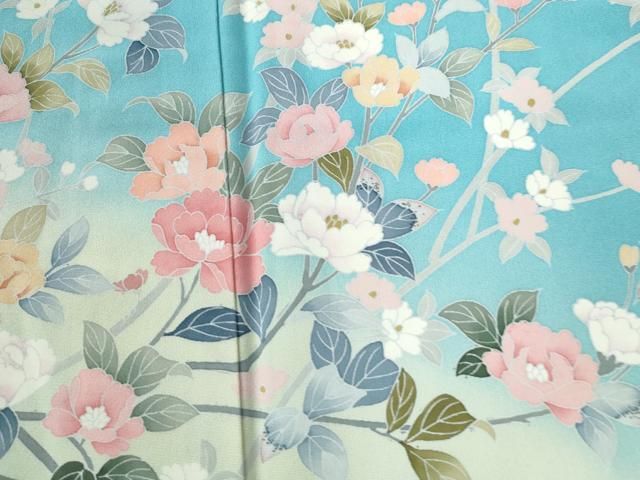 平和屋着物 訪問着 友禅 作家物 枝牡丹 暈し染め 正絹 yc