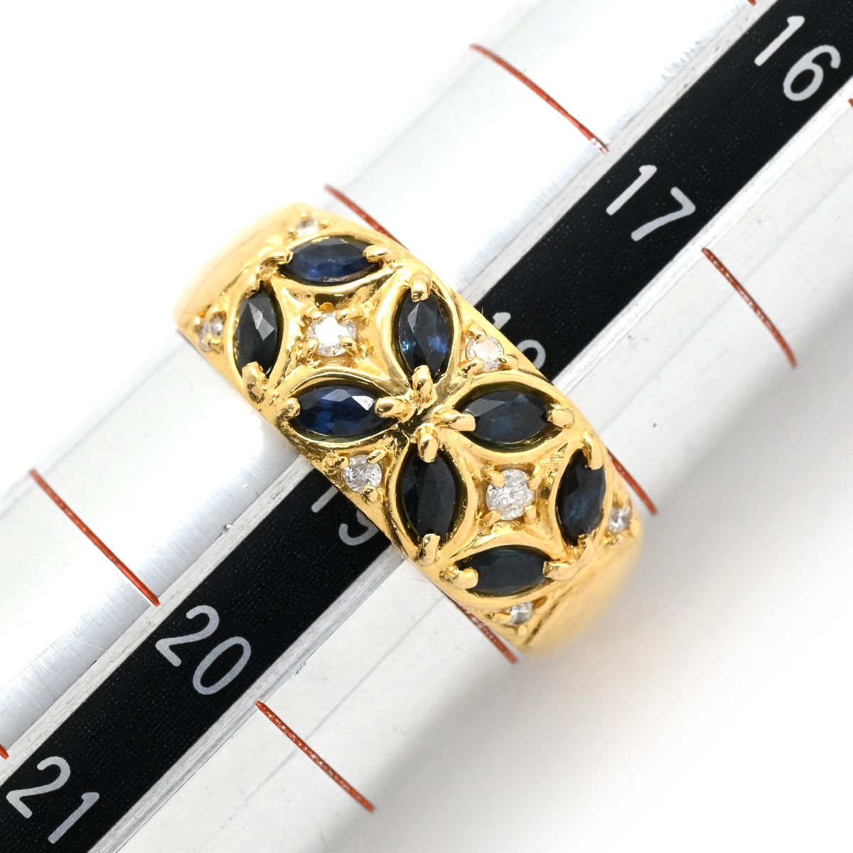 リング 指輪 ブルーサファイア ダイヤ K 18 YG サファイア ダイヤモンド イエローゴールド 青 マーキスカット 18.5号