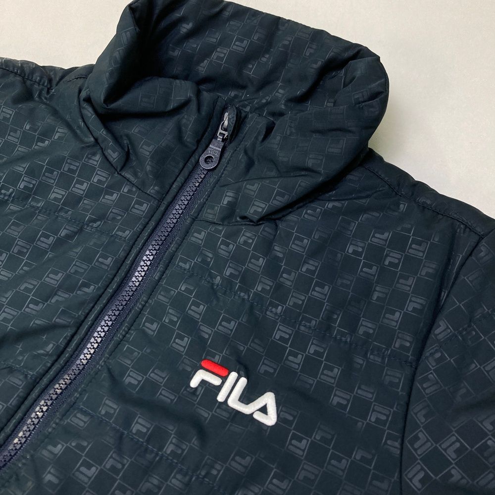 サイズ M FILA GOLF フィラゴルフ 中綿 ジップジャケット ロゴ総柄 ネイビー系 ゴルフウェア レディース ストスト