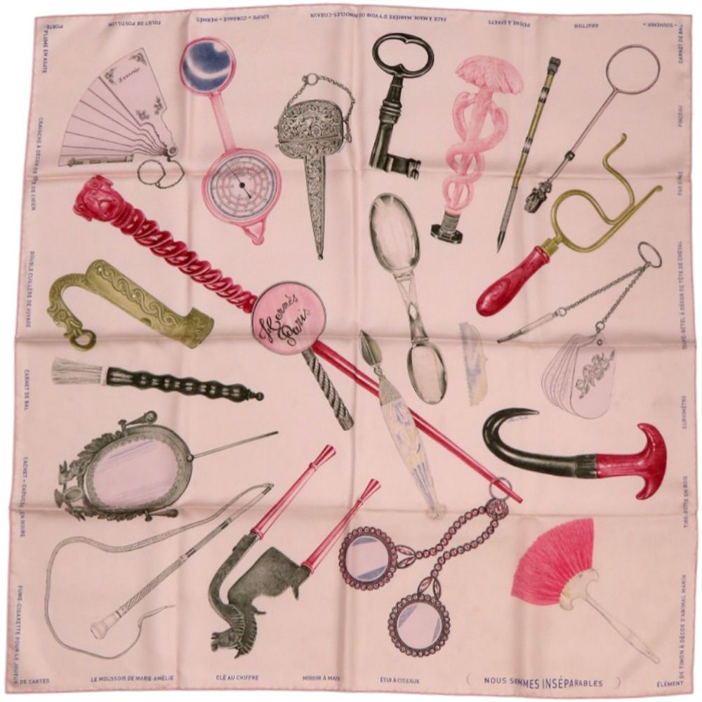 エルメス カレ90 切っても切れない仲間 Nous Sommes Inséparables シルク ローズ テ ルージュH ブロンズ ピンク スカーフ 0146 HERMES