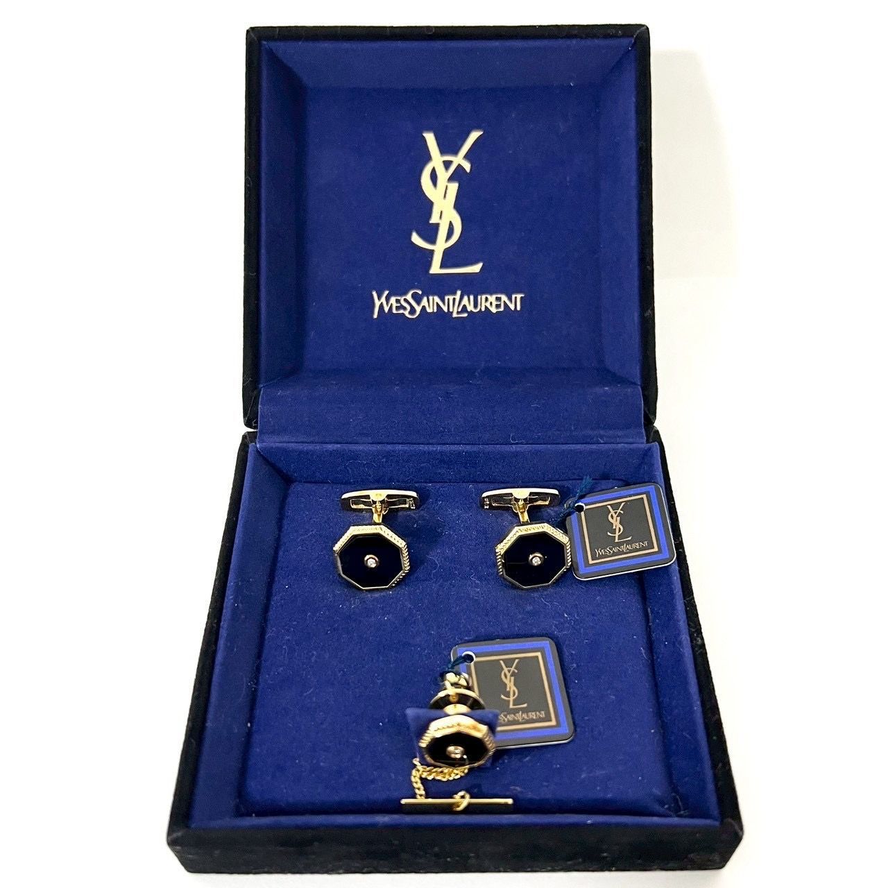 SD 2519 YVES SAINT LAURENT イヴサンローラン 1 Pダイヤ カフス カフリンクス カフスボタン タイピン タイタック ラペルピンSV 925 ゴールド×ブラック