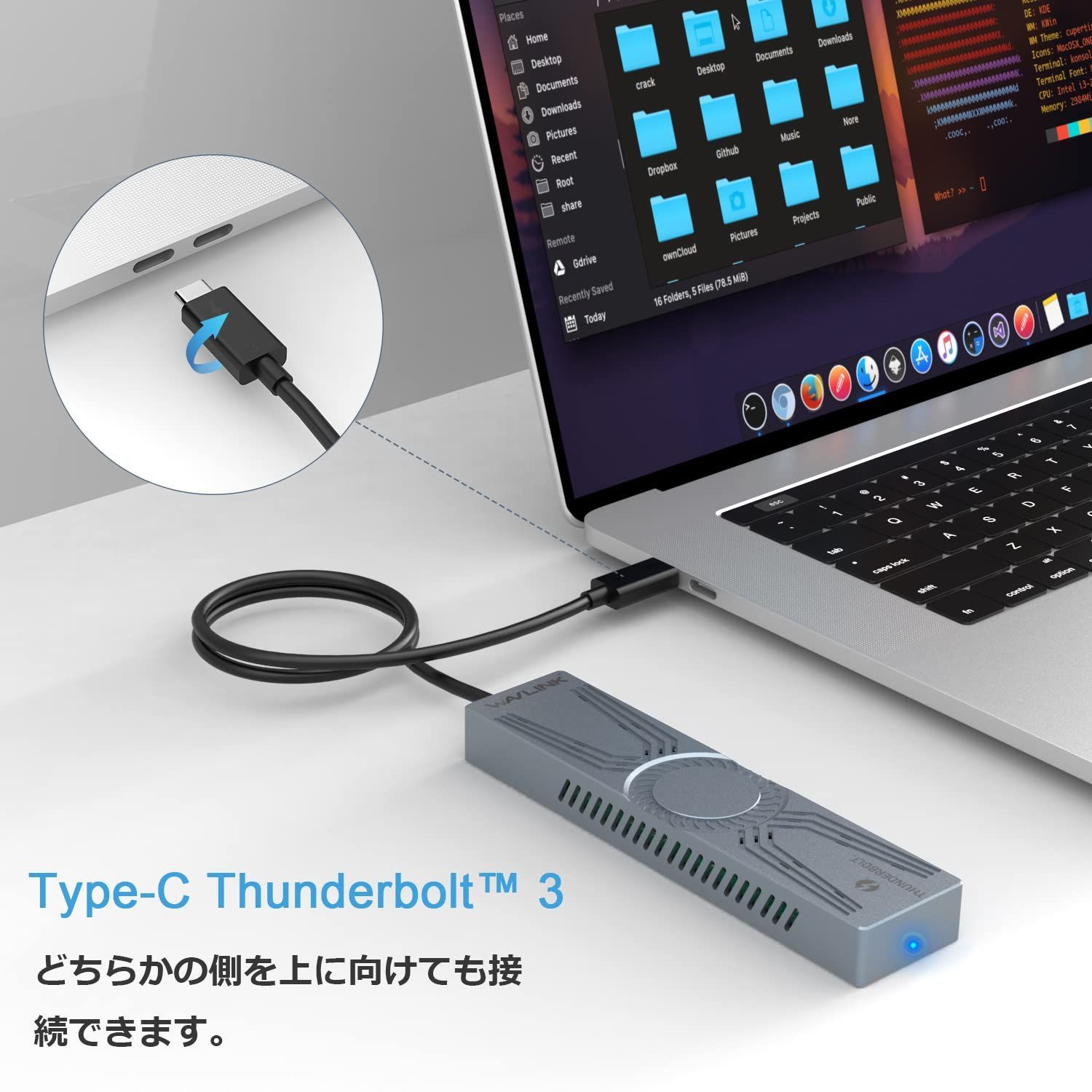 Wavlink 40Gbps超高速 M.2 PCIe NVMe SSD エンクロージャー、アルミ製M.2 SSD 外付けケース、Thunderbolt 3/4 Type-C to M Key/B+M Key 2280 、Thunderbolt 3/4/USB4 互換、高性能なヒートシンクデザイン搭載、最大4TB対応