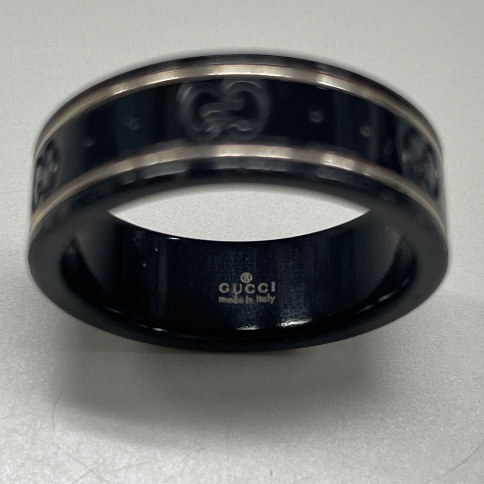 GUCCI アイコンGG シンバンド K 18ホワイトゴールド × コランダム リング 指輪 グッチ ブラック系 19号 273 M 3