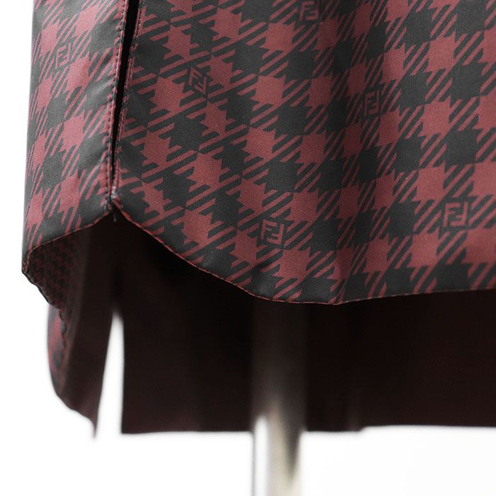 【シリーズ】FENDI フェンディ コート リバーシブル ナイロン 2022年製 FF ロゴ ズッカ 千鳥格子柄 レイン ボタン付 メンズ 48 赤 黒 伊製