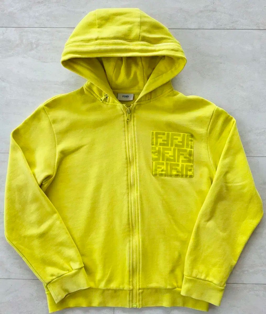 正規品。FENDI フェンディ キッズ フード ジップアップ ジャケットです。イェロー カラー。
