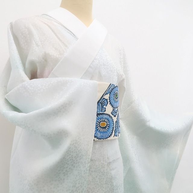 淡い色彩が上に重ねる着物をやさしく引き立て、装い全体に上品な明るさを添えます。