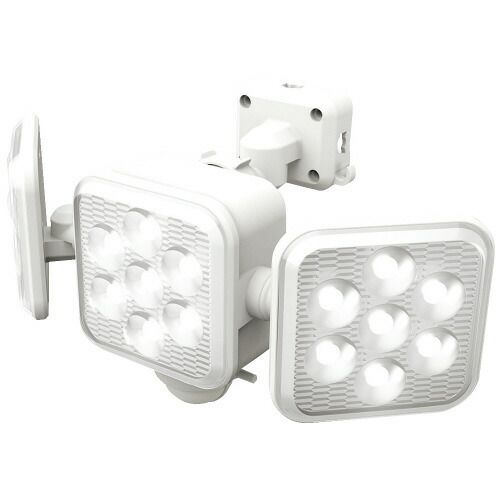 玄関先やガレージなどの防犯灯や夜間の自動照明に!●寸法:幅281×奥134×高さ145mm●質量[g]:(乾電池、クランプ除く)430●使用電池:単一形アルカリ乾電池×3本(別売)●電池持続時間:100%点灯時:約3ヶ月(約90日)、50%点灯時:約5.5ヶ月(約165日)※1日10回点灯※使用環境や電池の性能により異なります。●使用電球:5W×3高輝度白色LED(設計寿命4万時間)●明るさ:1350lm●仕様:防犯フラッシュ機能付き、100%点灯・50%点灯切り替え可能、フリーアーム式●付属品:取り付けネジ×2、コンクリート用プラスチックプラグ×2、クランプ台、蝶ナット、L型ボルト、ネジキャップ