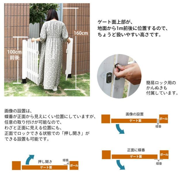 ピケットフェンスペット侵入防止ゲート猫脱走防止子供外門扉丁番片開きガーデニング目隠しフェンスドッグランウッドデッキ庭屋外玄関木製