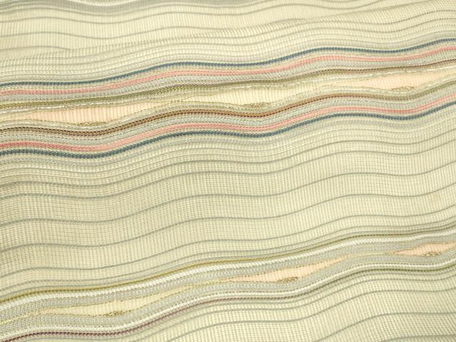 平和屋着物 夏物 九寸名古屋帯 よろけ縞 金糸 正絹 cm