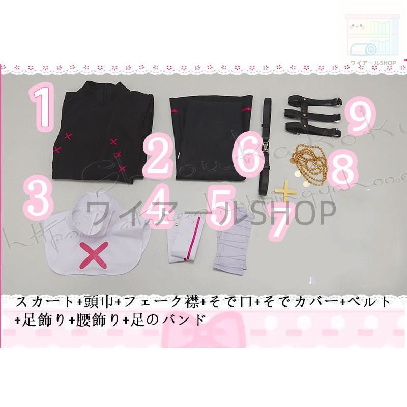 ◆衣装全セット内容:スカート+頭巾+フェーク襟+そで口+そでカバー+ベルト+足飾り+腰飾り+足のバンド(写真参照)