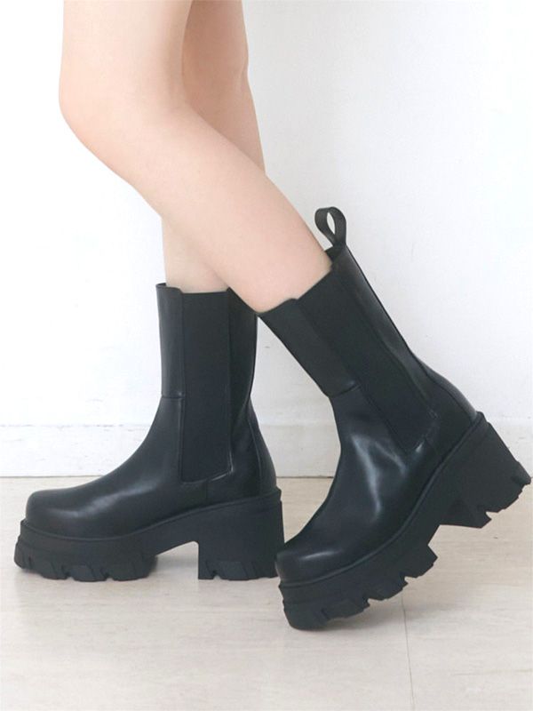 末入荷予定 EMODA エモダ 厚底 ブーツ レディース 厚底ブーツ サイドゴア タンク 8.5 cm おしゃれ かわいい シンプル 無地 脚長 細見え 脚長効果 太めのヒール