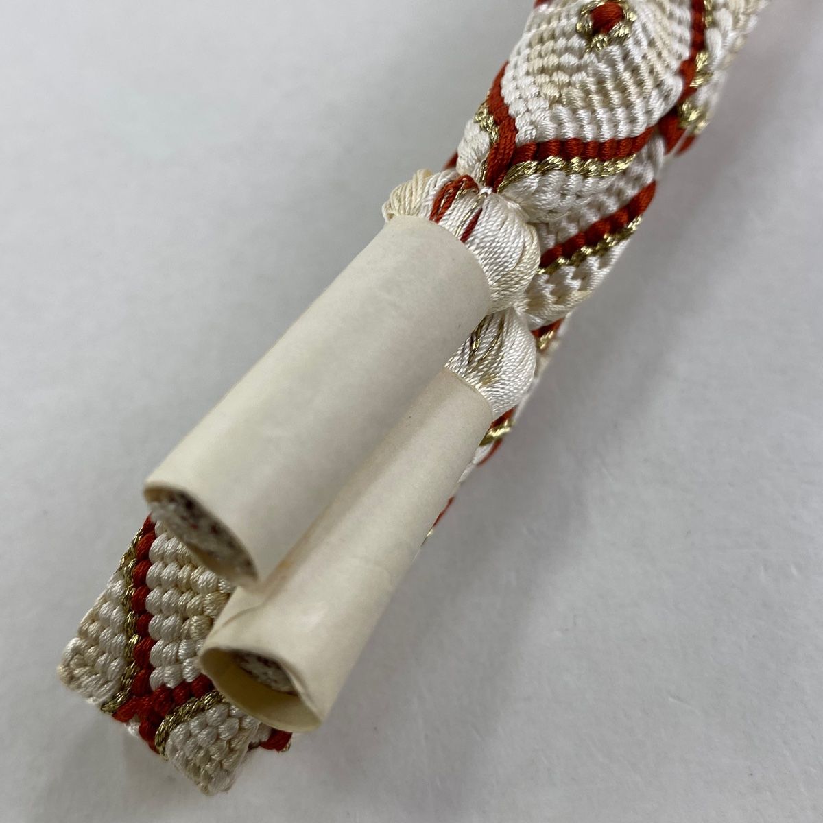 帯締め 無形文化財 有職組紐 道明 菱 幾何学模様 金糸 灰白 正絹 和装小物