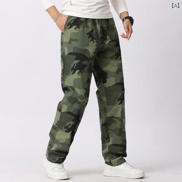 4 XL 秋冬 コーデ メンズ 服 シンプル ファッション オシャレ 大人 かっこいい 大きいサイズ ストリート 紳士服 ストレート パンツ アーミーグリーン 迷彩 長ズボン アウトドア カジュアル コットンパンツ 伸縮 ストレッチ ウエスト