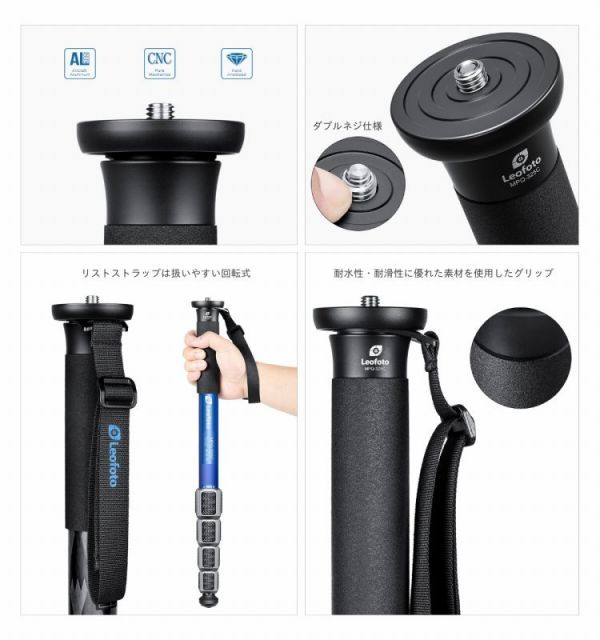 レオフォトMPQ-325Cブラック/防水カーボン一脚レオフォトMPQ-325Cブラック/防水カーボン一脚