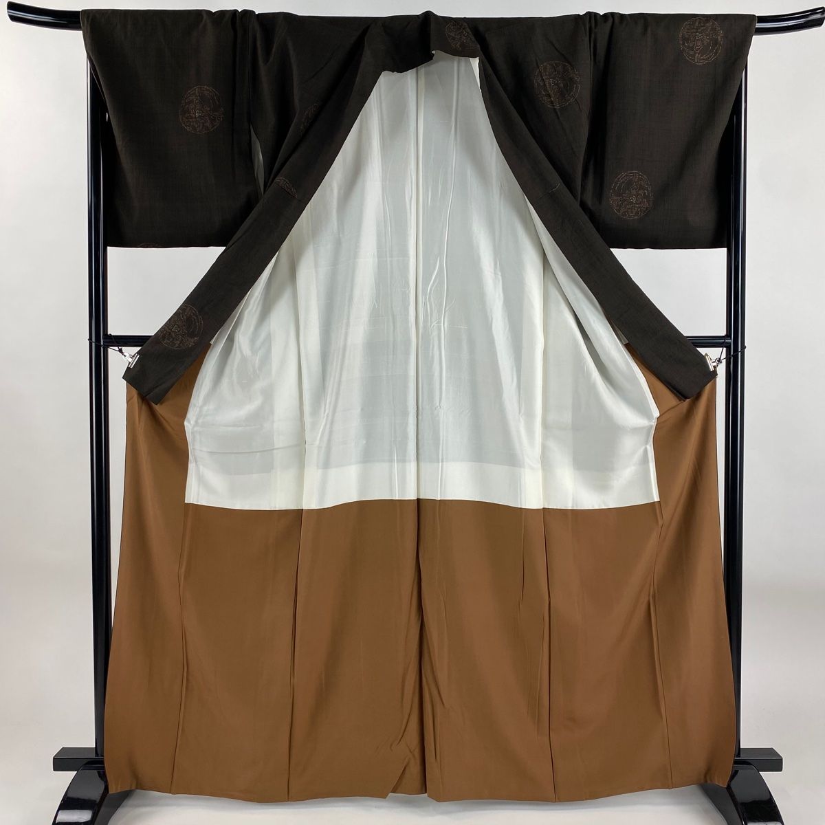 結城紬 身丈165 cm 裄丈69 L 袷 奥順 証紙 花丸文 亀甲絣 焦茶色 正絹