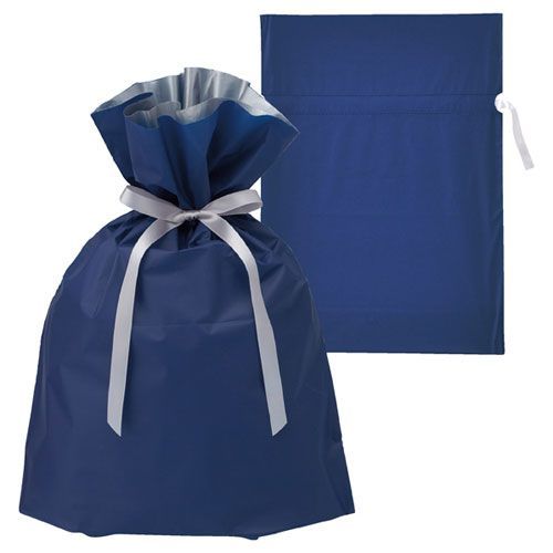 梨地リボン付きギフトバッグL ネイビー 61 271 3