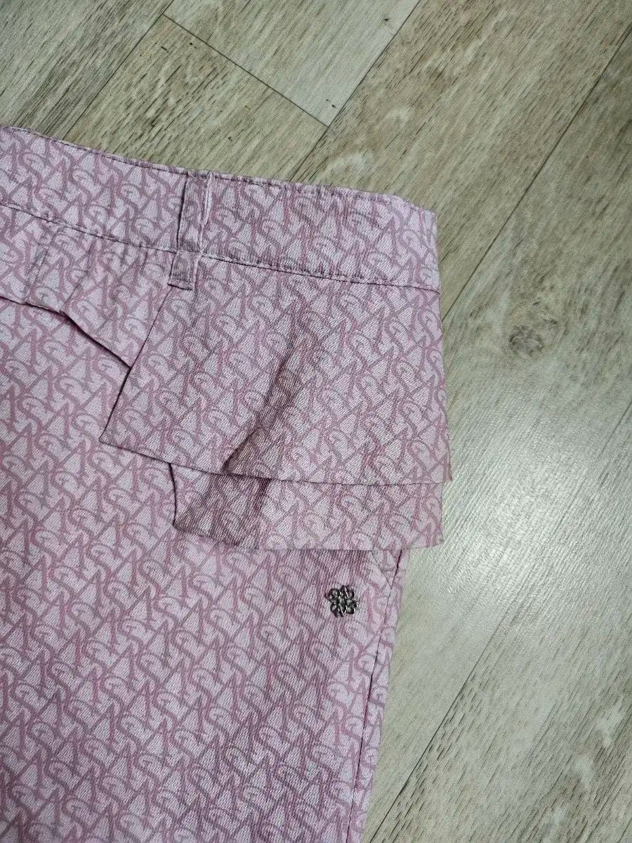 セントアンドリュースのゴルフスカートのサイズは70です。セントアンドリュースのロゴがほのかなピンク色で全体に施されています。フィールドでも着やすいデザインです。